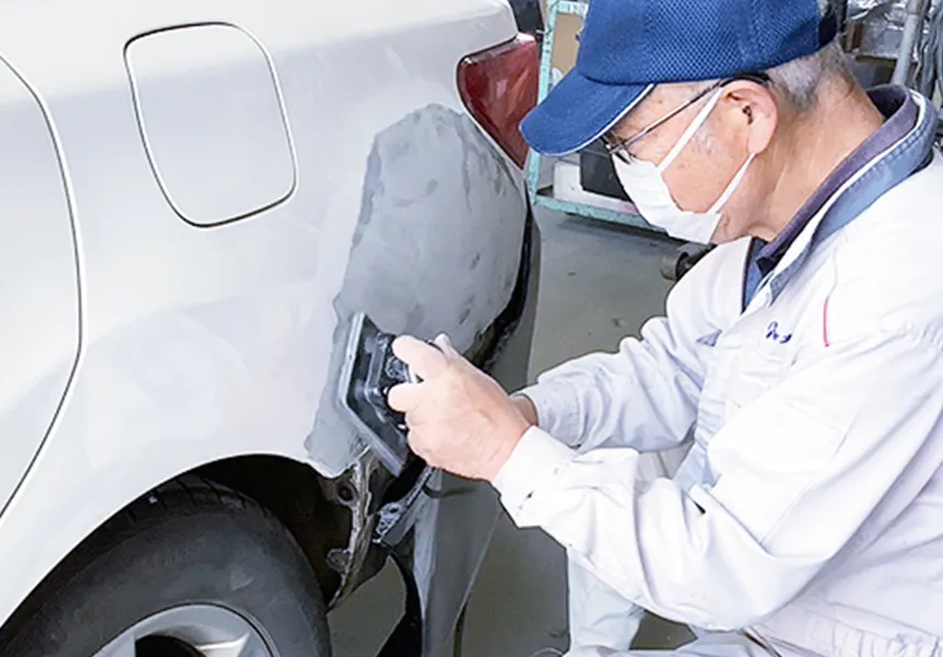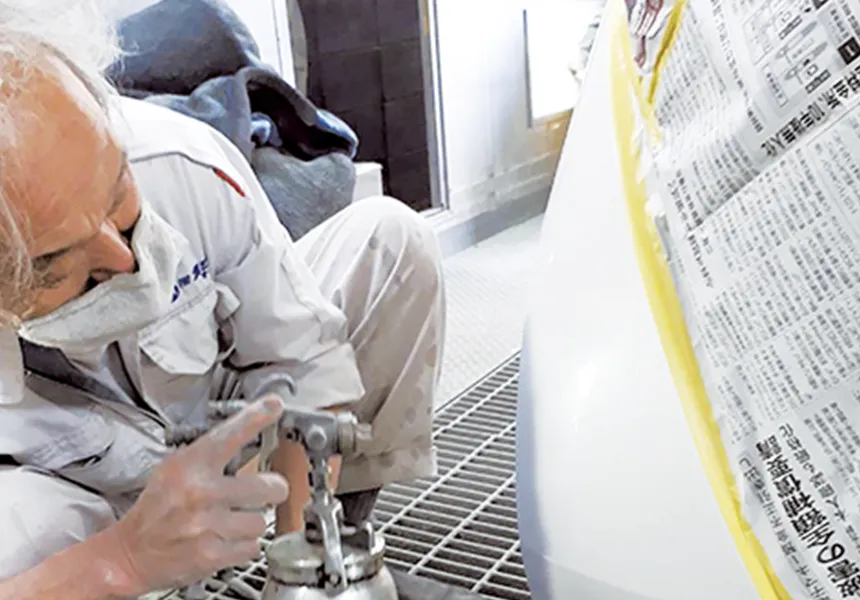 業務スタッフに多数のベテランスタッフが揃っており、修理に関しては、各自動車メーカー勤務経験のあるスタッフ、飯金塗装に関しては、飯金業務創業時からのベテランスタッフが対応しています。